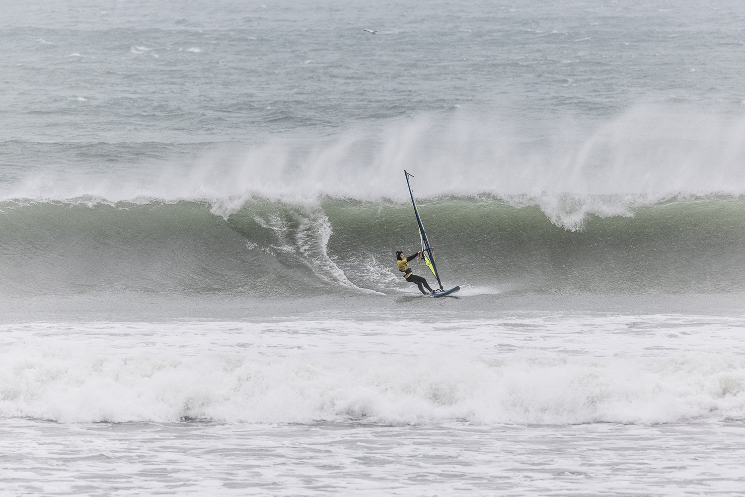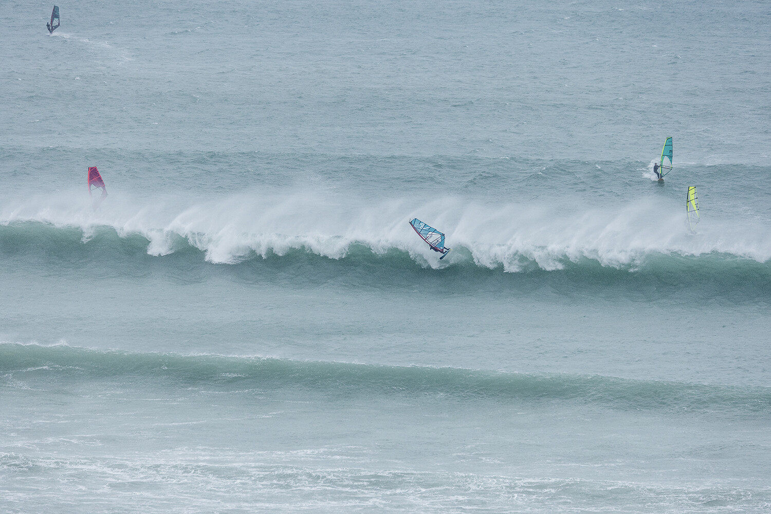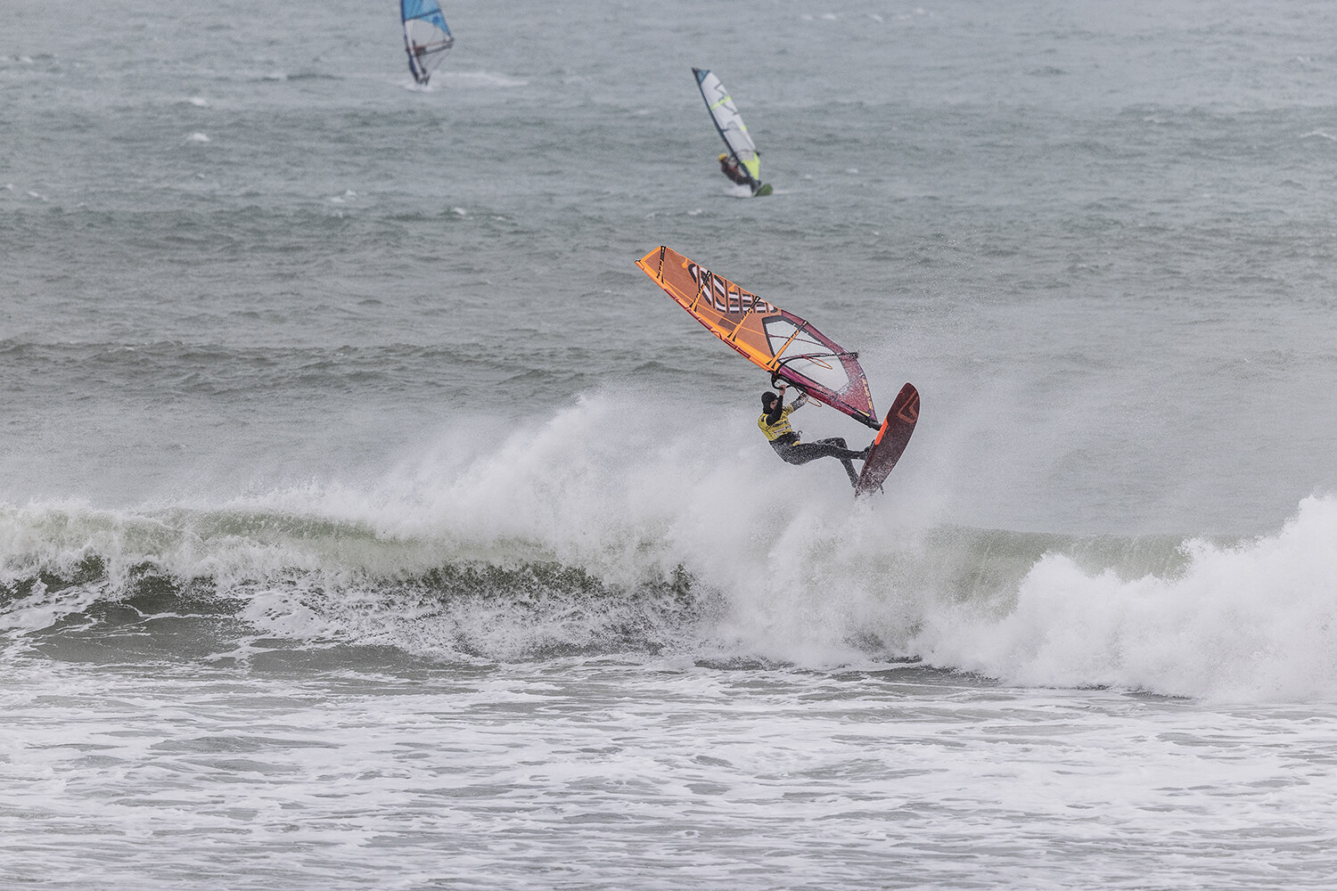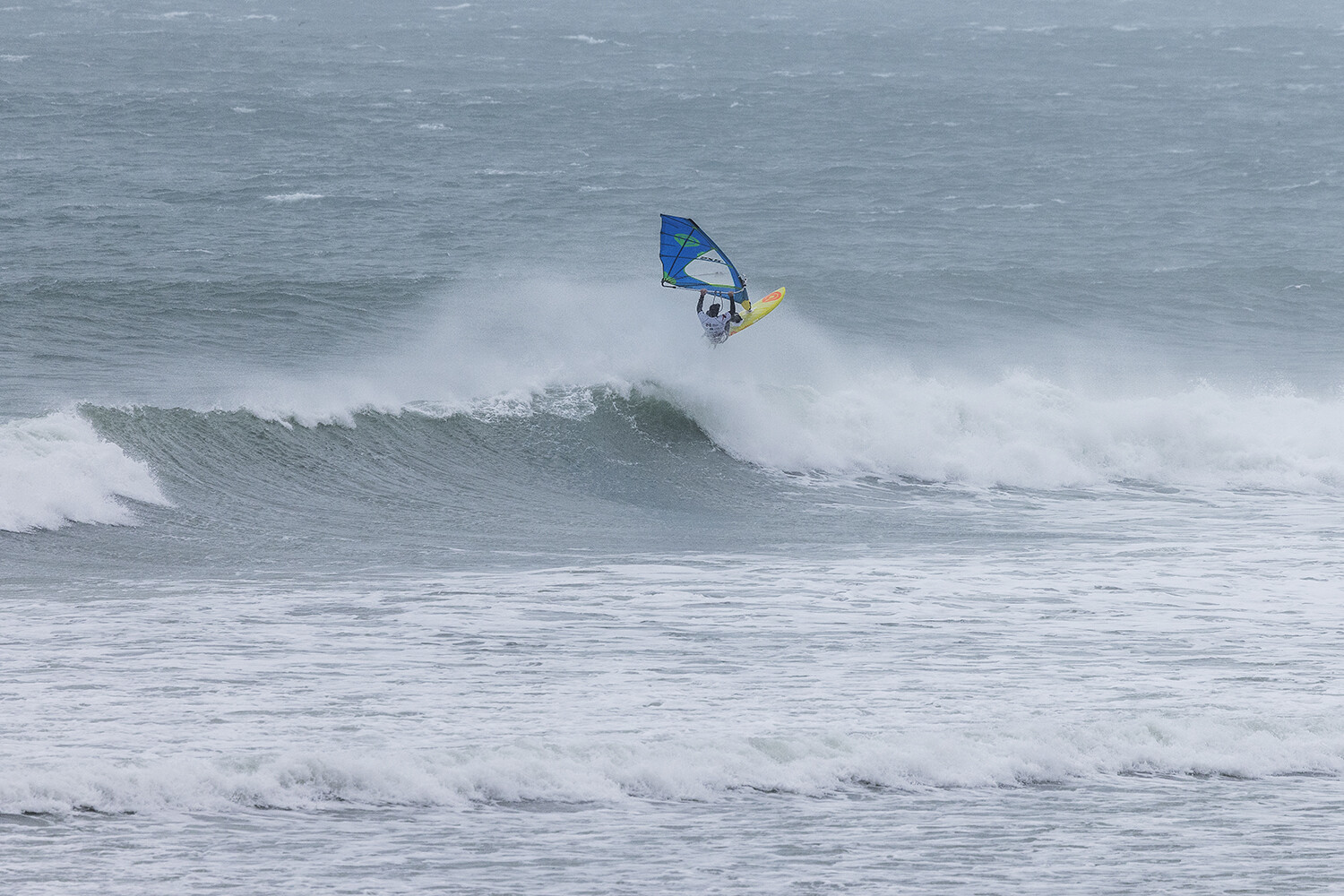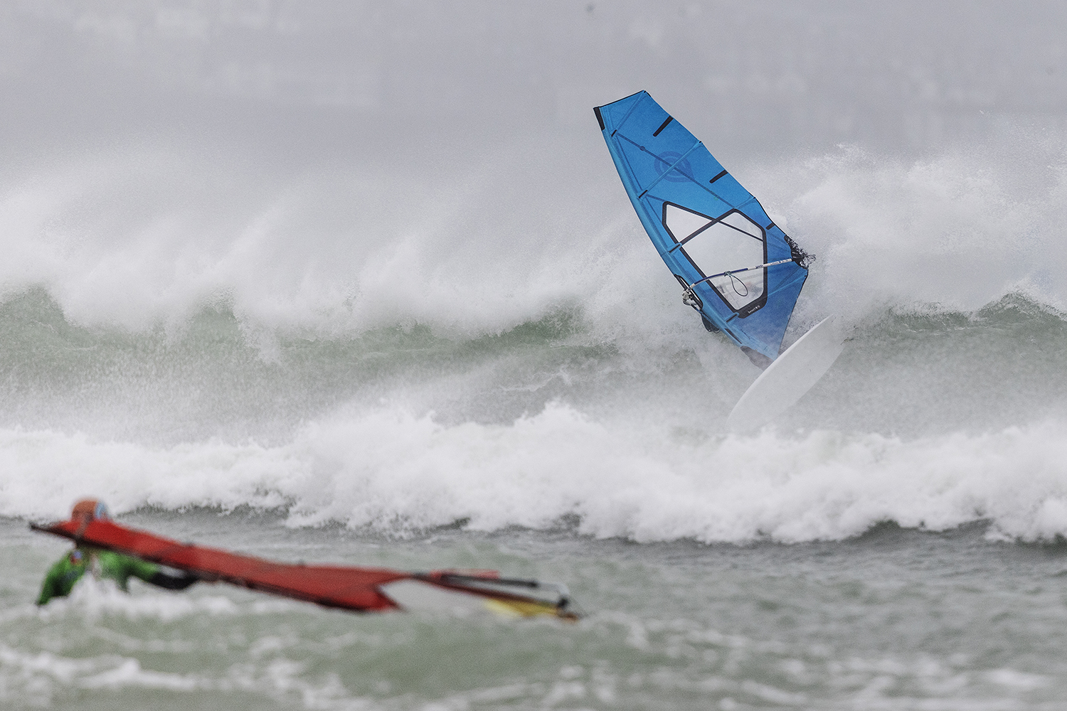 I was first on the water and figured I might as well get out there and break the ice. We had all see the forecast and there was a lot of anticipation. We were all a bit nervous at 4.5m swells and strong winds. The stronger wind actually helped. I’d rather it be windy than 5.3m weather when it is that big. The small sails can be a bit twitchy when the lulls come. I was a bit relived when I first got there to be honest. It was not as big as thought it might be. There is a size where it is still sailable, and you have to be a bit mindful.