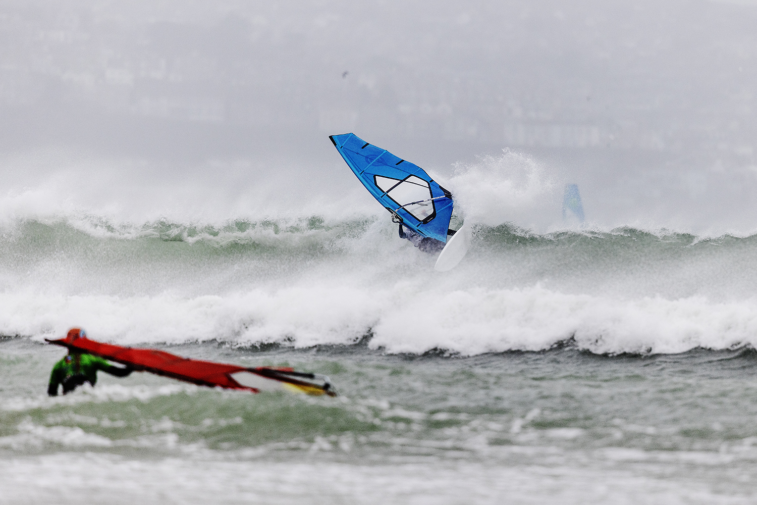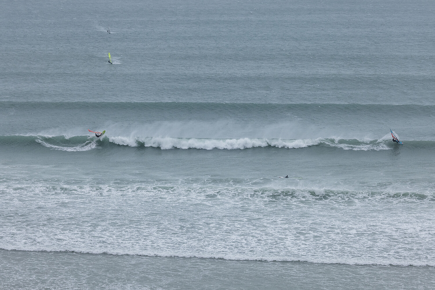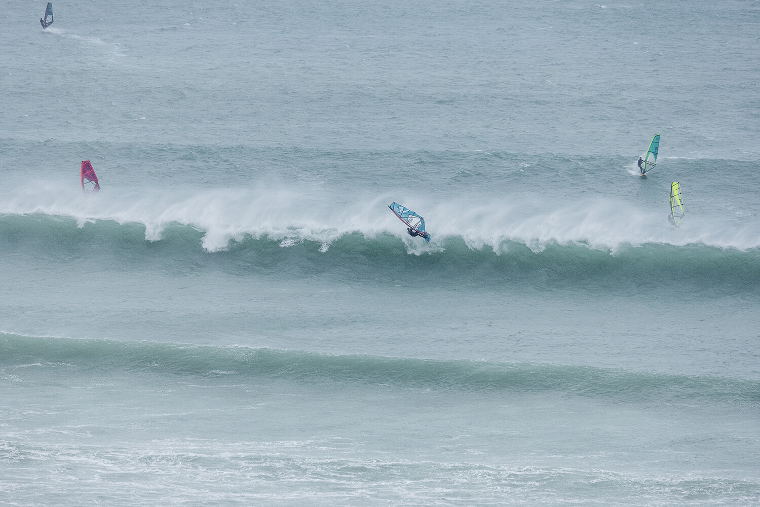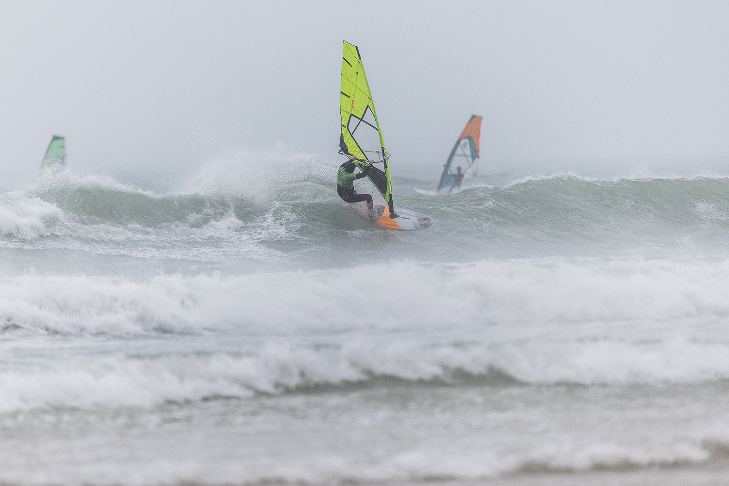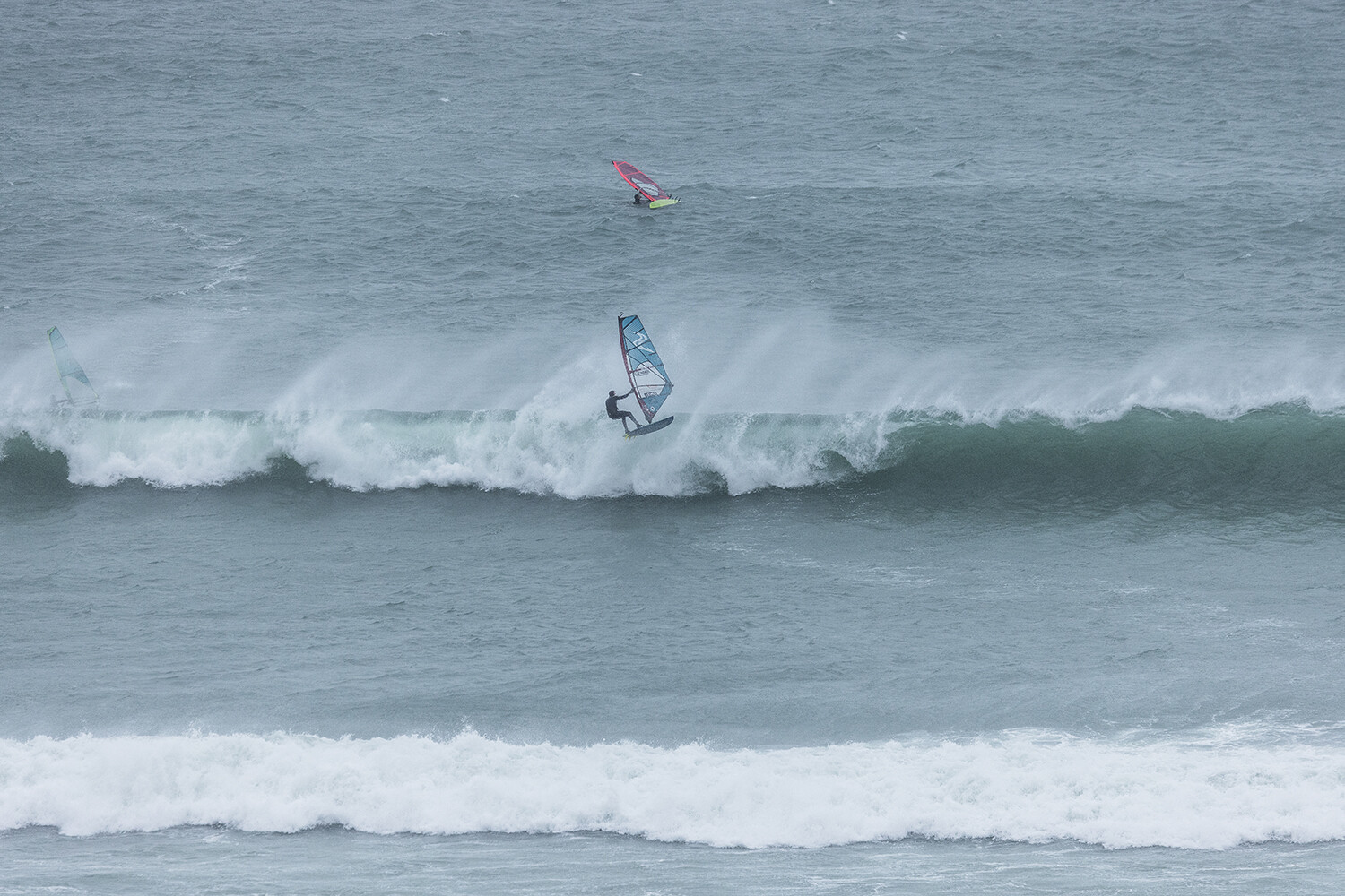 I was first on the water and figured I might as well get out there and break the ice. We had all see the forecast and there was a lot of anticipation. We were all a bit nervous at 4.5m swells and strong winds. The stronger wind actually helped. I’d rather it be windy than 5.3m weather when it is that big. The small sails can be a bit twitchy when the lulls come. I was a bit relived when I first got there to be honest. It was not as big as thought it might be. There is a size where it is still sailable, and you have to be a bit mindful.