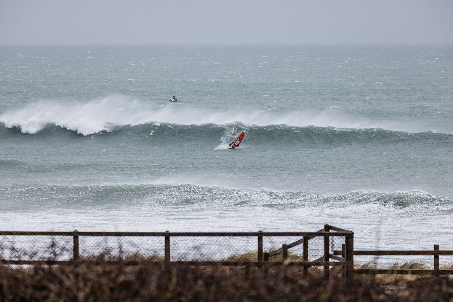 Down from the beach we could not really see much. We did not get to see the action like normal from the car park. All you could see were the tips of the masts between all of this white water. When I got back up on the cliff, I realized how big it actually was.