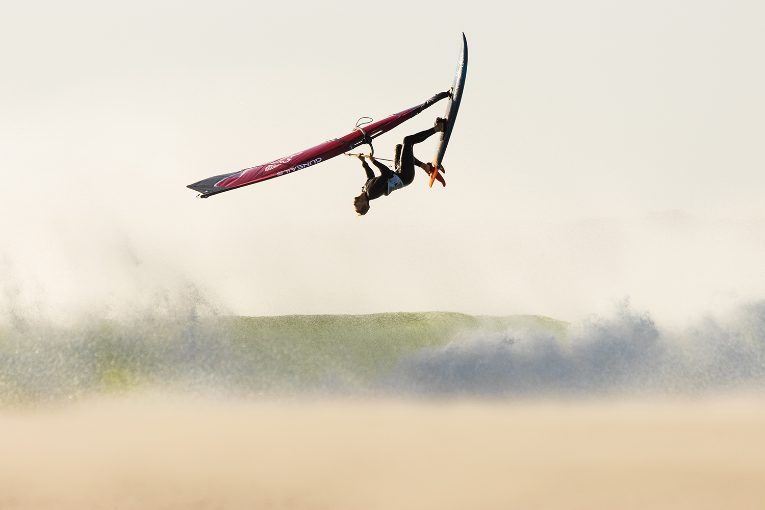 FJ: “One move I came up with is a unique variation of the Rodeo Flip, which I called the “Ocean Jump.” It’s a twist on the cheese roll, done switch stance with your back facing the sail, a pretty wild setup and definitely not the easiest thing to land. To this day, I don’t know anyone else who’s pulled it off.