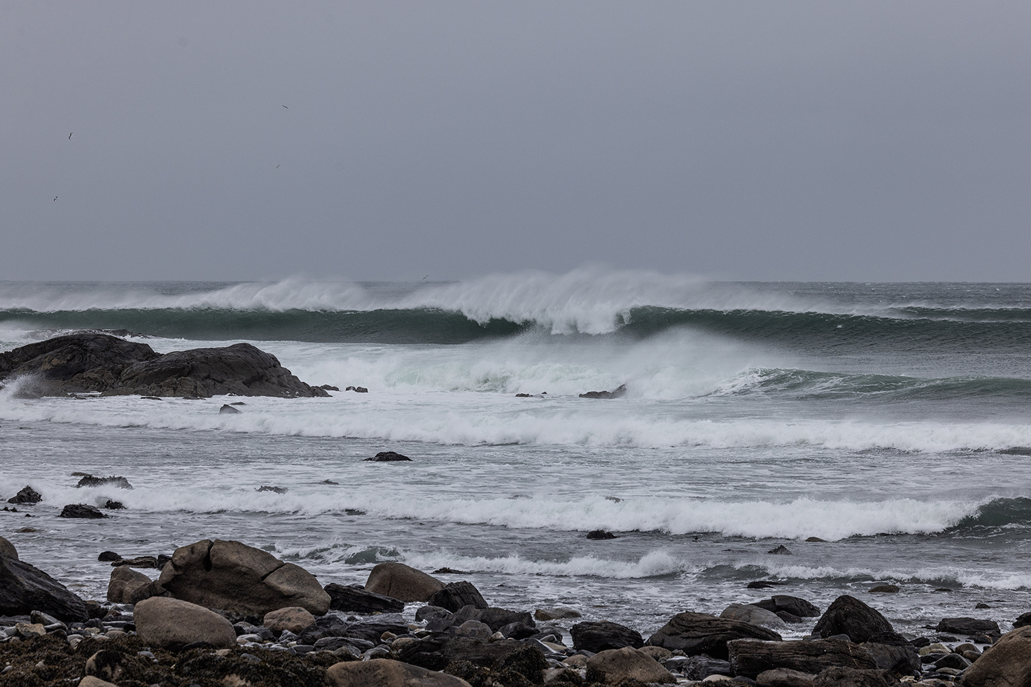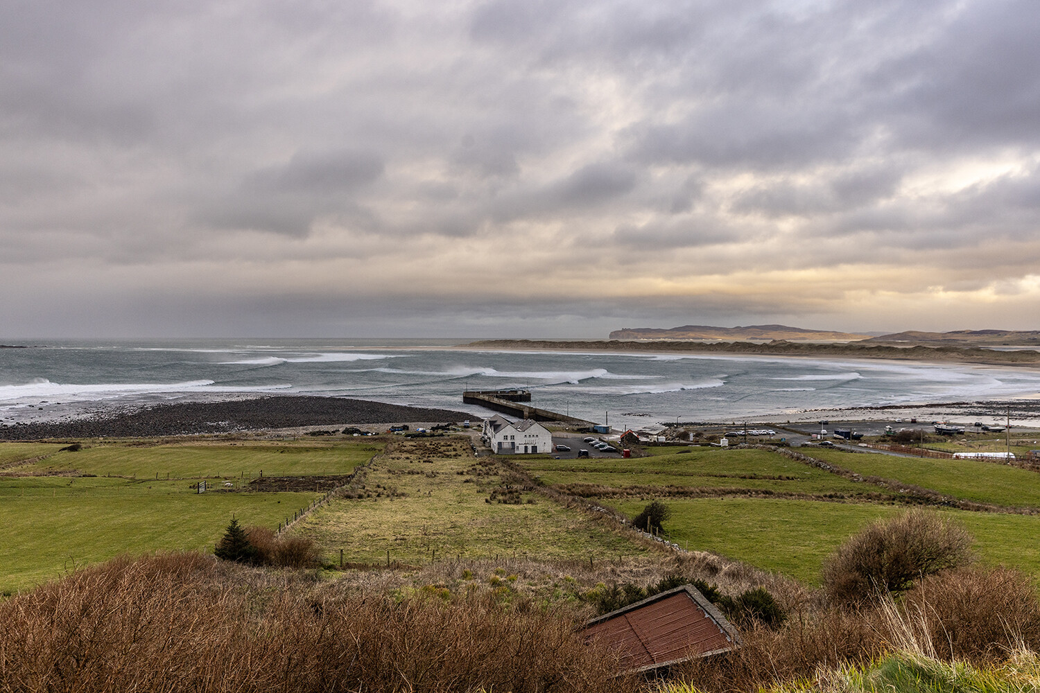 12.05pm: Finally arrive at Magheroarty to the site of half mast high sets pluming in the offshore winds.