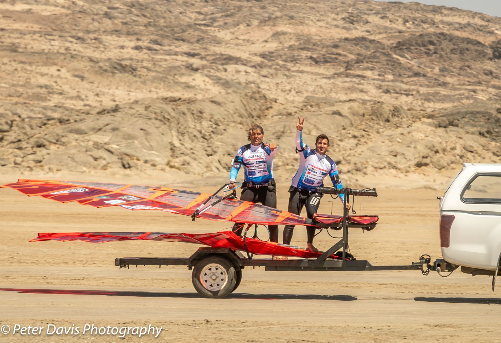 This event is not all about world records, the site is home to over 20 national records and they are just as prized by the competitors who take part. None fiercer than the British speedsters Jim Crossley and Simon Pettifer. These two have windsurfed and raced together for over 30 years and both want to break the British record held by the late great Farrel O’Shea but at 51.20 knots it is no soft target.