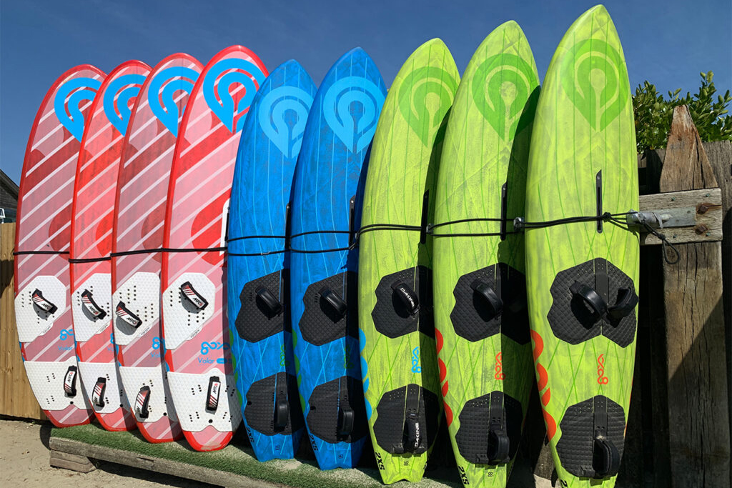 The equipment used for lessons is all new gear, and we use this from beginner level upwards. The brands we use for teaching/demo and hire are: Ezzy sails, Ezzy carbon RDM masts, Chinook booms and extensions, Goya, Quatro, Duotone, Fanatic, RRD Windsurfing boards; for kiting we use Ozone and RRD kites and boards; Wing Foiling equipment from Duotone, Fanatic, KT, Quatro, Axis Foils, Ozone and RRD. Our SUP’s are from Fanatic.