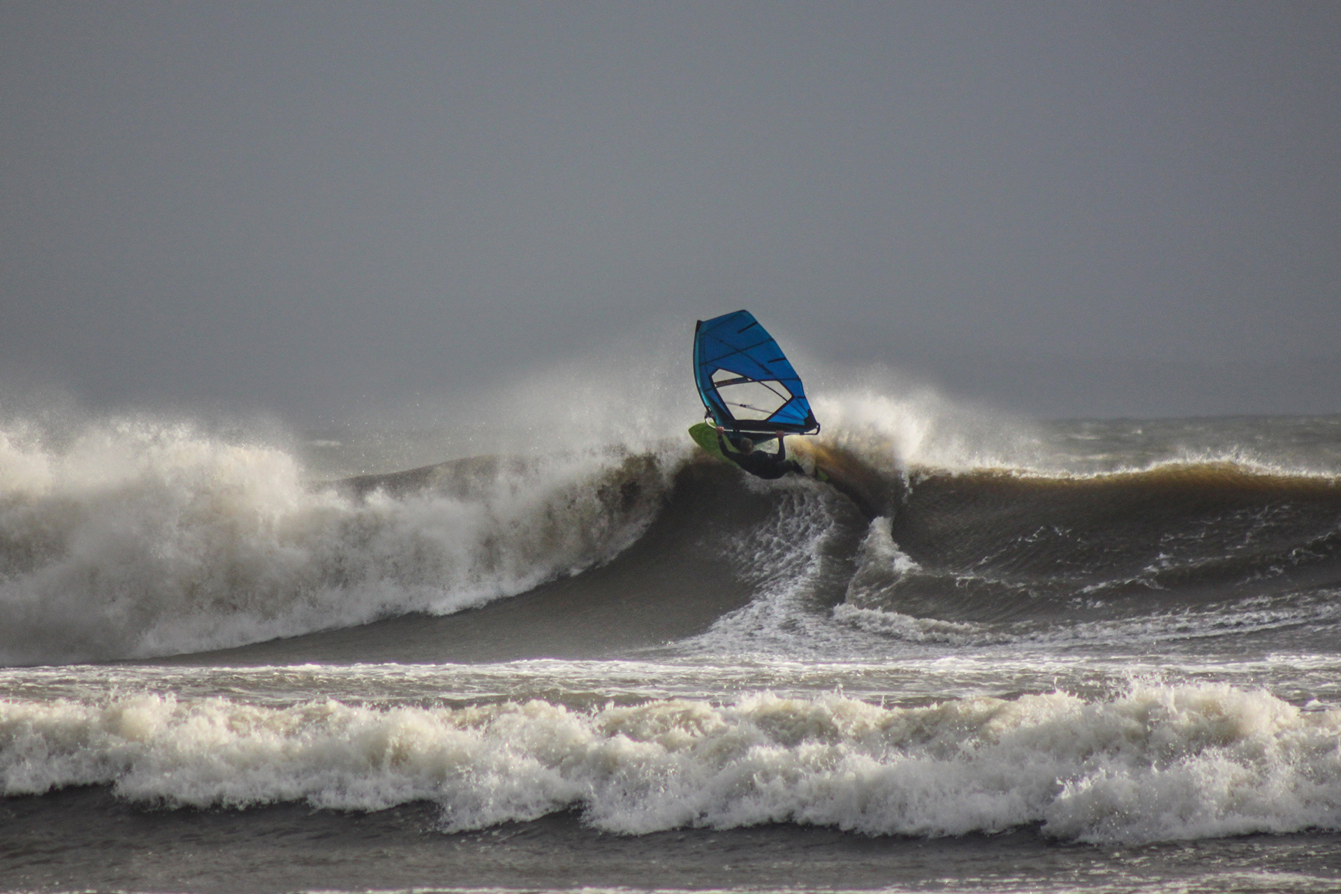 I rigged my 4.5 Goya Banzai Surf Carbon and 86l Custom Thruster 4. I opted for the thruster over the Quad at first as the waves at Avon quite often lack power and speed, so you need a fast board with more drive to make the most of it. However after my first 2 waves it was apparent that it was really windy, so speed wasn’t an issue and the waves had a lot more power than usual. I came straight in and grabbed my 84l Goya Quad 8 which was the perfect choice! The waves just kept getting better and better, the swell was solid and there were some pretty meaty (for Avon) ones coming through. The biggest ones were around logo high which never happens at Avon. You could actually sail way out back and gybe on a set swell and cruise all the way into the sandbar on it, then when it hit the outer sandbar, it jacked up and properly broke top to bottom. You could get 3-4 turns on the first section and then wait for the reforms further down and closer in. This was the magic section of the wave because it was so smooth as its protected by Mudeford Beach and sandbank. You could then get another 3-4 turns on this part of the wave with a couple of throwing sections. By the end of the wave your forearms and back leg were burning!