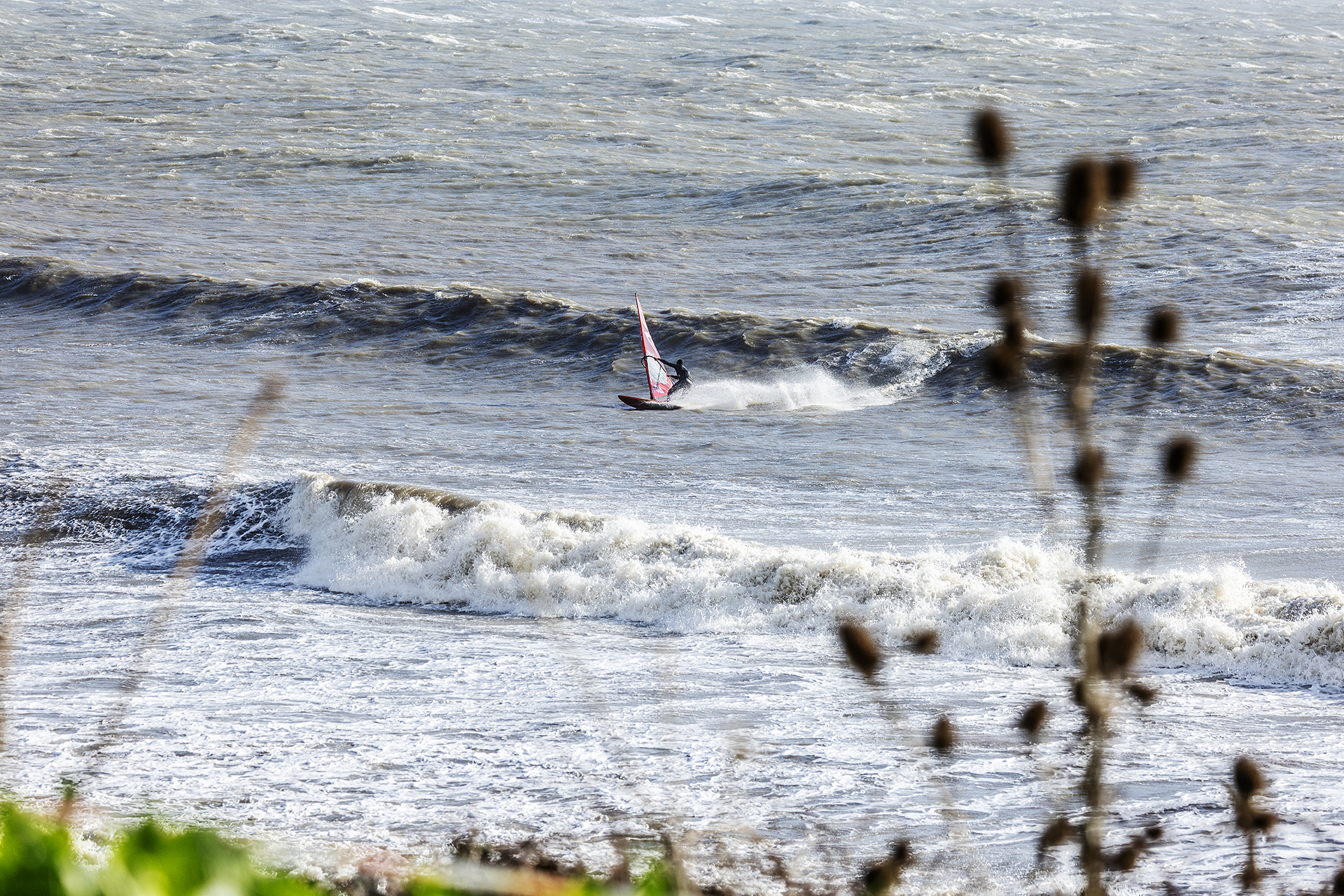 The thing with Niton is that it can be fickle. The waves often hit the bay slightly diagonal to the wind, bending away just as riders go for the lip. Still fun but it can be frustrating…however when the wind and swell line up perfectly for cross-offshore riding, it is rare. When it does happen though, Niton turns from moody to magic very quickly.