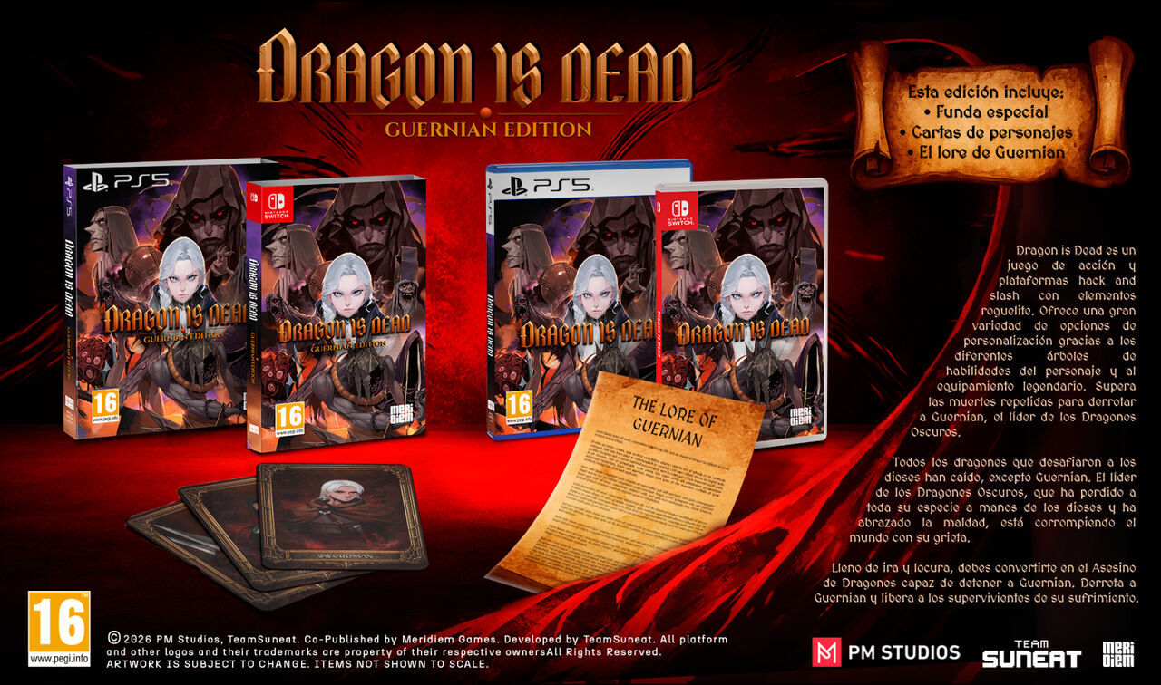 Dragon is Dead, un hack and slash 2D roguelite de fantasía oscura 2D de Team Suneat, tendrá edición en formato físico con una edición especial para PlayStation 5 y Nintendo Switch. Estará disponible en España el 14 de julio, ha confirmado Meridiem Games.
