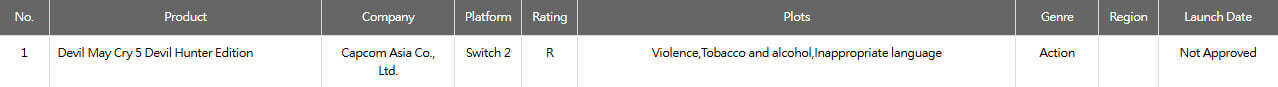 Capcom estaría preparando el lanzamiento de Devil May Cry 5 en Nintendo Switch 2, según el sistema de clasificación por edades de Taiwán que menciona Devil May Cry 5 Devil Hunter Edition para la actual generación de Nintendo.
