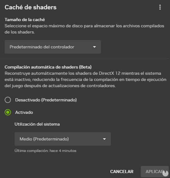 - Activar la función Compilación automática de shaders.
