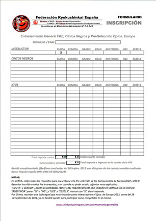 Este formulario de inscripción, lo tiene que confeccionar y enviar a la FKE, el Instructor de Dojo.