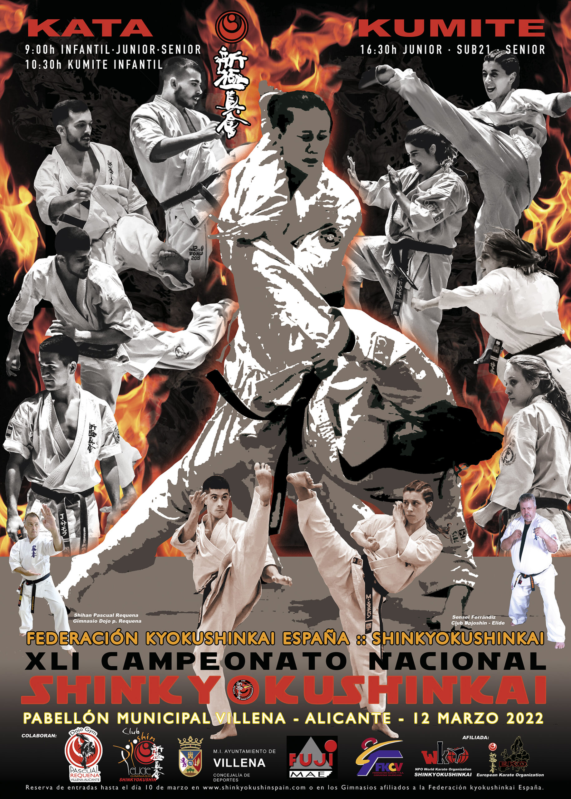 Shihanes, Senseis, Sempais, Instructores, Alumnos, amigos, familiares y simpatizantes, no perderos el mejor escaparate de Kyokokushinkai, nuestro Campeonato Nacional Shinkyokushin, que como otros años, tendremos asistencia de Organizaciones Nacionales Invitadas y de países EKO afiliados.