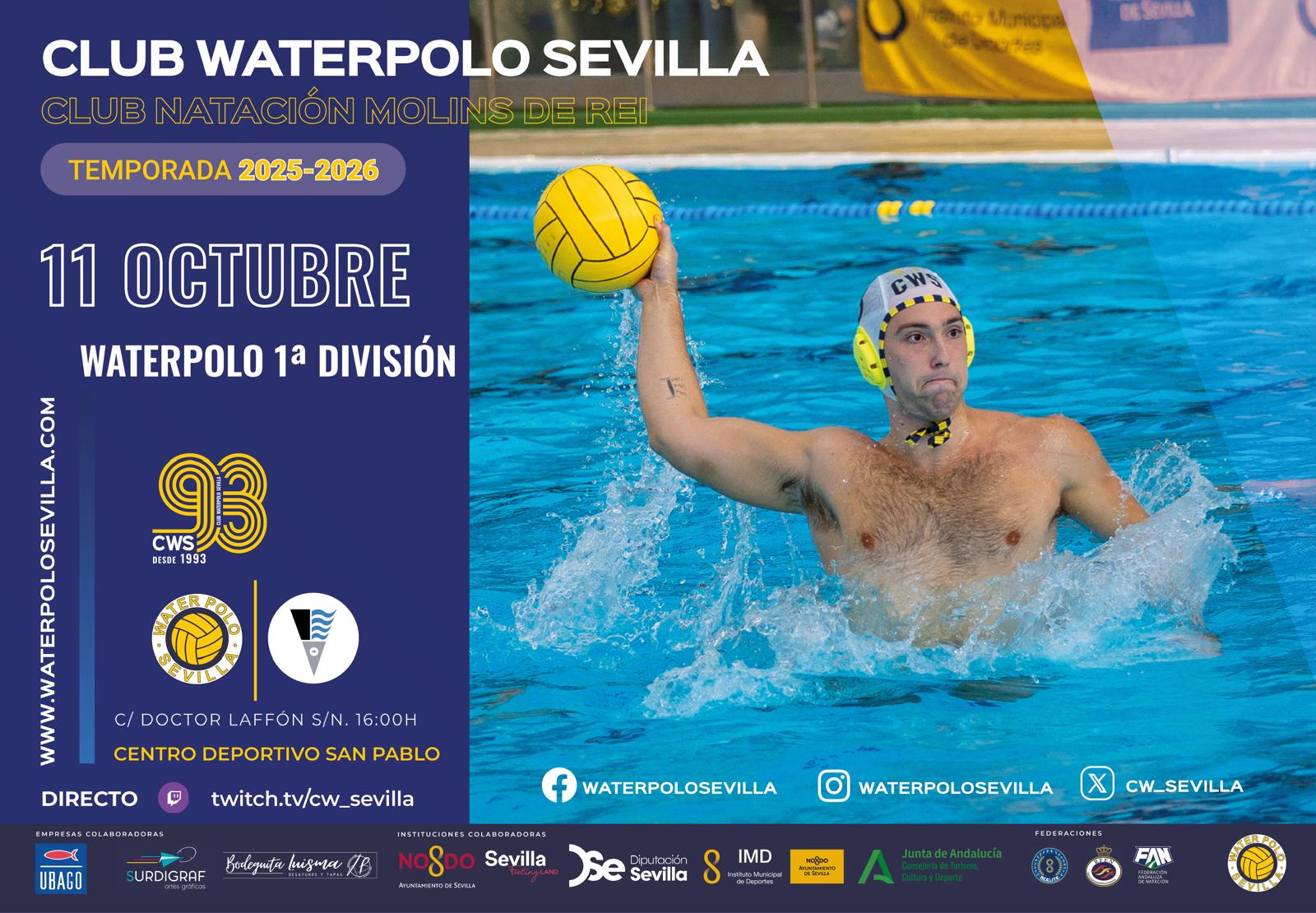 El próximo sábado volverá la competición de la categoría de plata del waterpolo masculino nacional a Sevilla. Será en este caso en la piscina del CD San Pablo donde el único representante andaluz en la misma recibirá al CN Molins de Rei. Ambos conjuntos se encuentran encuadrados en el grupo B de la primera fase de la liga junto a los aragoneses del CN Helios y hasta otros cuatro representantes del waterpolo barcelonés: CN Montjuic, CN Poble Nou, CN Sant Feliú y CN Premiá. Siguiendo el sistema de competición de las últimas campañas, al final de la primera fase los 4 primeros clasificados de cada uno de sus grupos pasarán a jugar en el grupo C en el que se dilucidarán las plazas del play-off de ascenso a División de Honor, mientras los otros tres jugarán en el grupo D buscando eludir las dos plazas de descenso a Segunda Nacional.