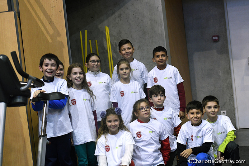 Les enfants de la haie d’honneur ont revêtu des tshirts SUEZ notre partenaire eau.
