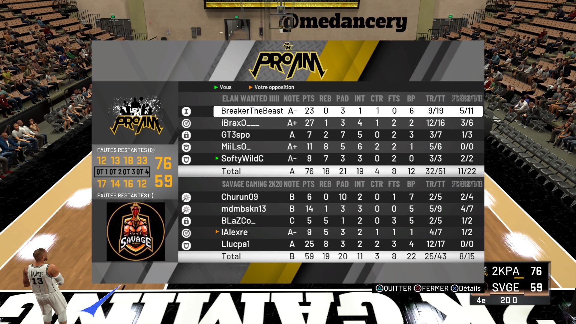 Elan Wanted 6-0 0 22 31/03/2020 11:29 Elan Chalon 2-0 Elan Wanted est actuellement à 6 victoires pour 0 défaite dans la compétition Buzzer Beater FR avec ses 2 nouvelles victoires hier soir contre Savage Gaming Club. Match 1 : Elan Wanted 76- 59 Savage Gaming Club Match 2 : Elan Wanted 100 – 42 Savage Gaming Club Pour revoir le match : STATS COMPLETES Cet article Elan Wanted 6-0 est apparu en premier sur Elan Chalon.