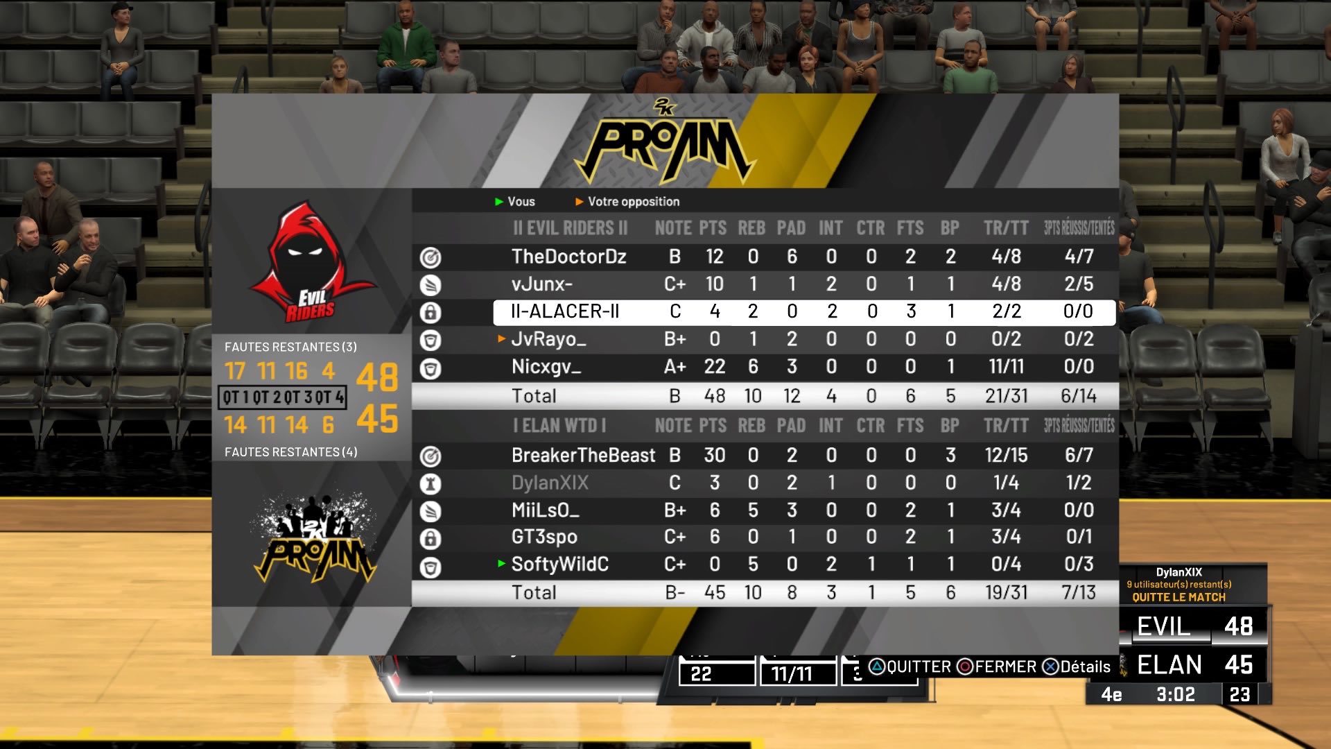 Elan Wanted enchaîne les victoires 0 17 30/04/2020 14:18 Elan Chalon 2-0 La soirée de mardi commençait très bien avec une victoire d’Elan Wanted 2-0 contre l’équipe Evil Riders en 1/2 finale BGA earn your spot : Match 1 : Evil Riders 39 – 51 Elan Wanted Match 2 : Evil Riders 52 – 55 Elan Wanted Revoir le match : 2-0 Elan Wanted est à 4-0 dans la ligue Elite du tournoi FPL2K suite à sa victoire contre GamingEyeq : Match 1 : Elan Wanted 61 – 47 Eyeq Match 2 : Eyeq 68 – 75 Elan Wanted A revoir sur : Elan Wanted enchaine avec un 2-0 contre Retrievers en ESBA Sport. Ce soir à 19h ils affrontent l’équipe BBack2K. A suivre sur : Cet article Elan Wanted enchaîne les victoires est apparu en premier sur Elan Chalon.