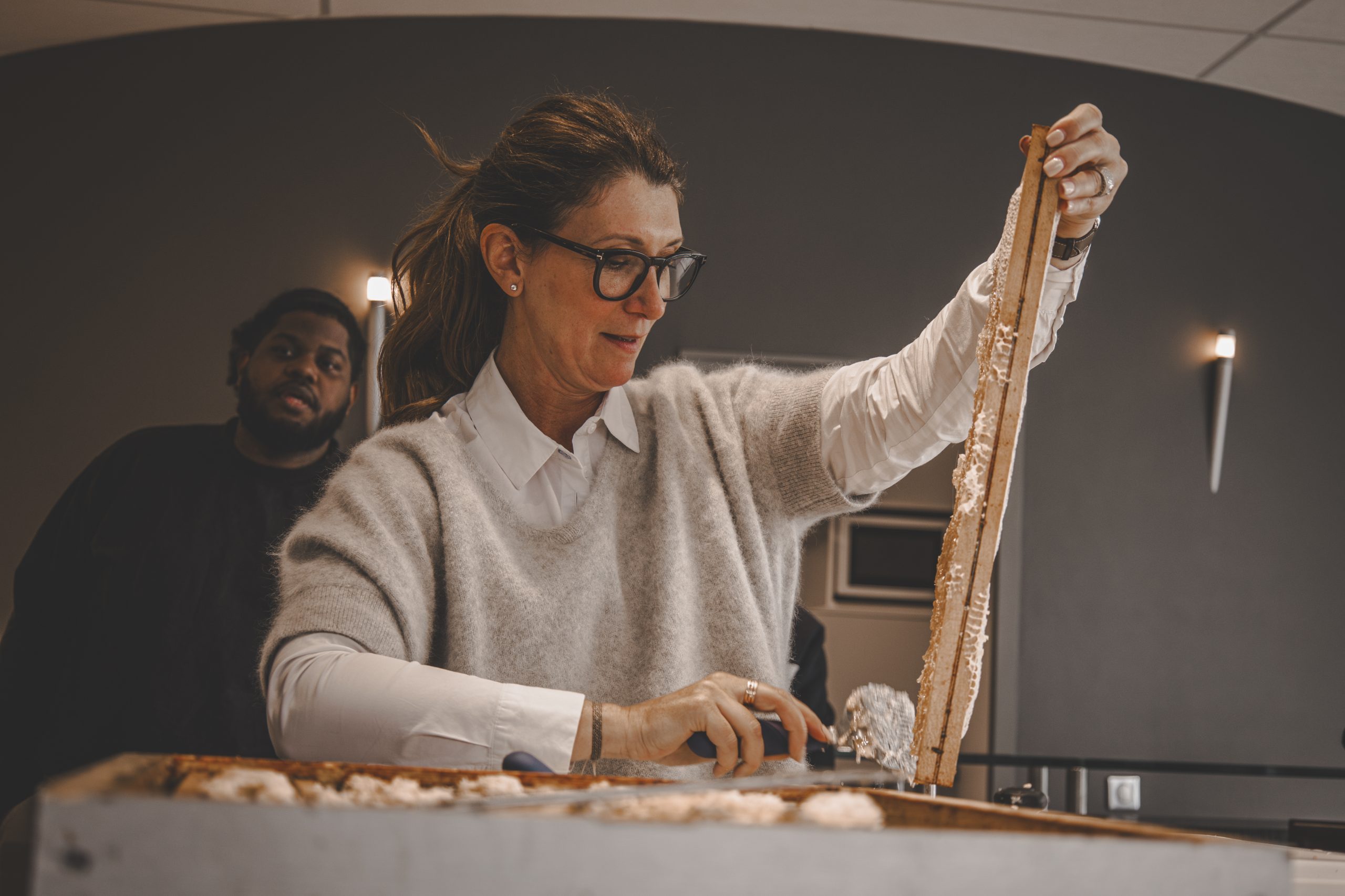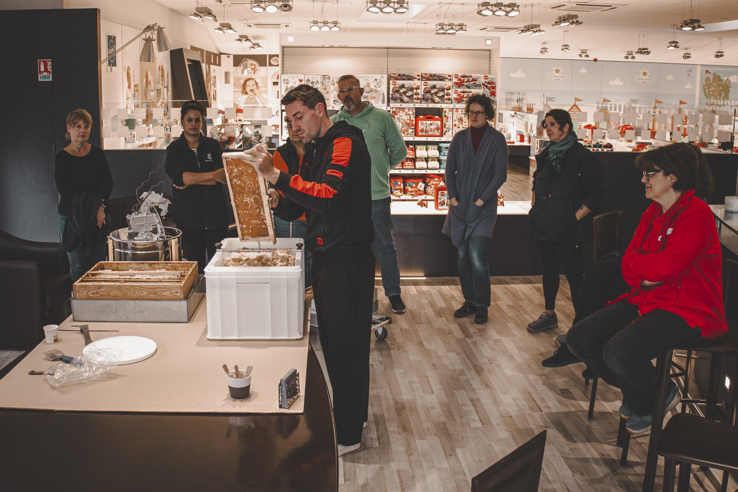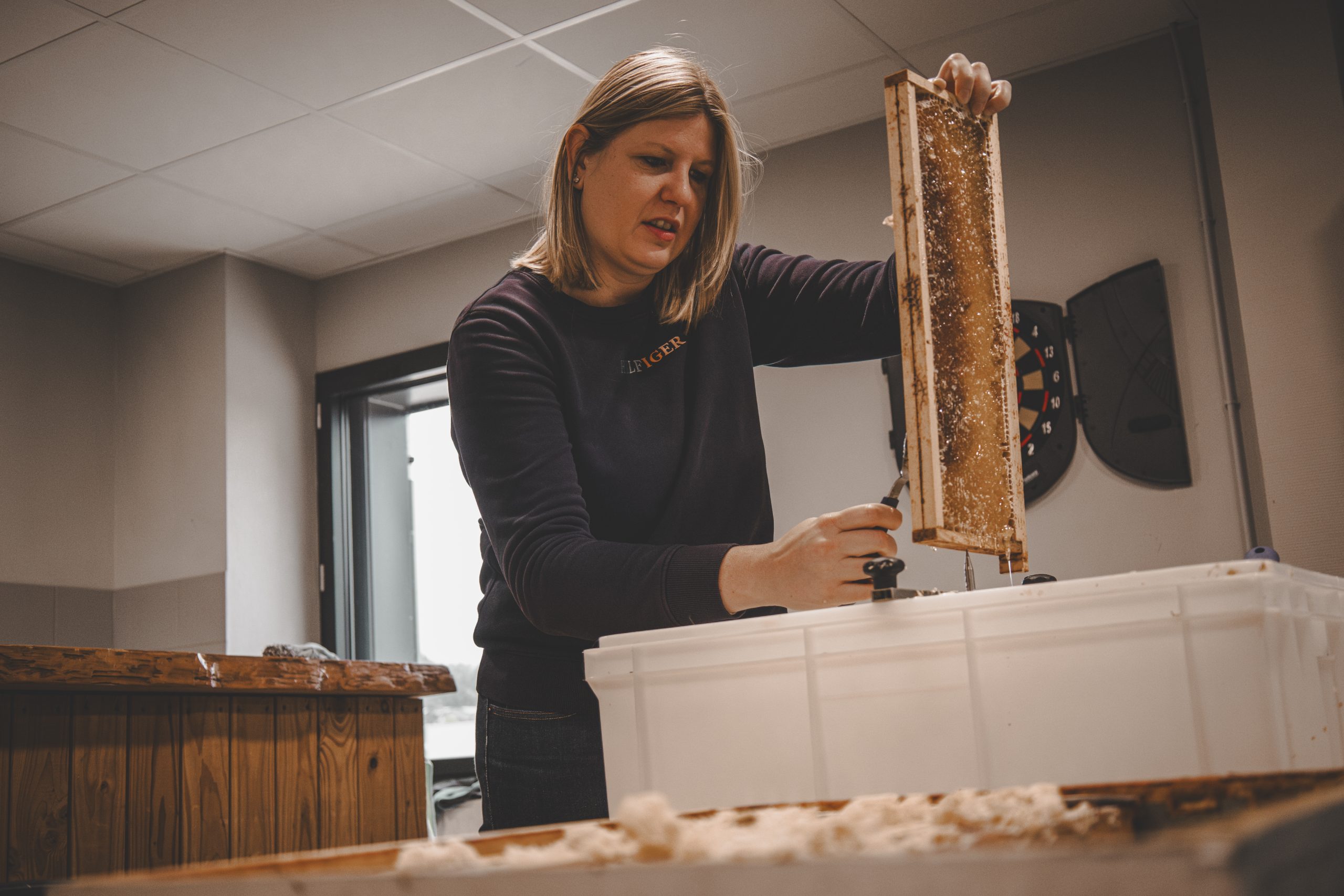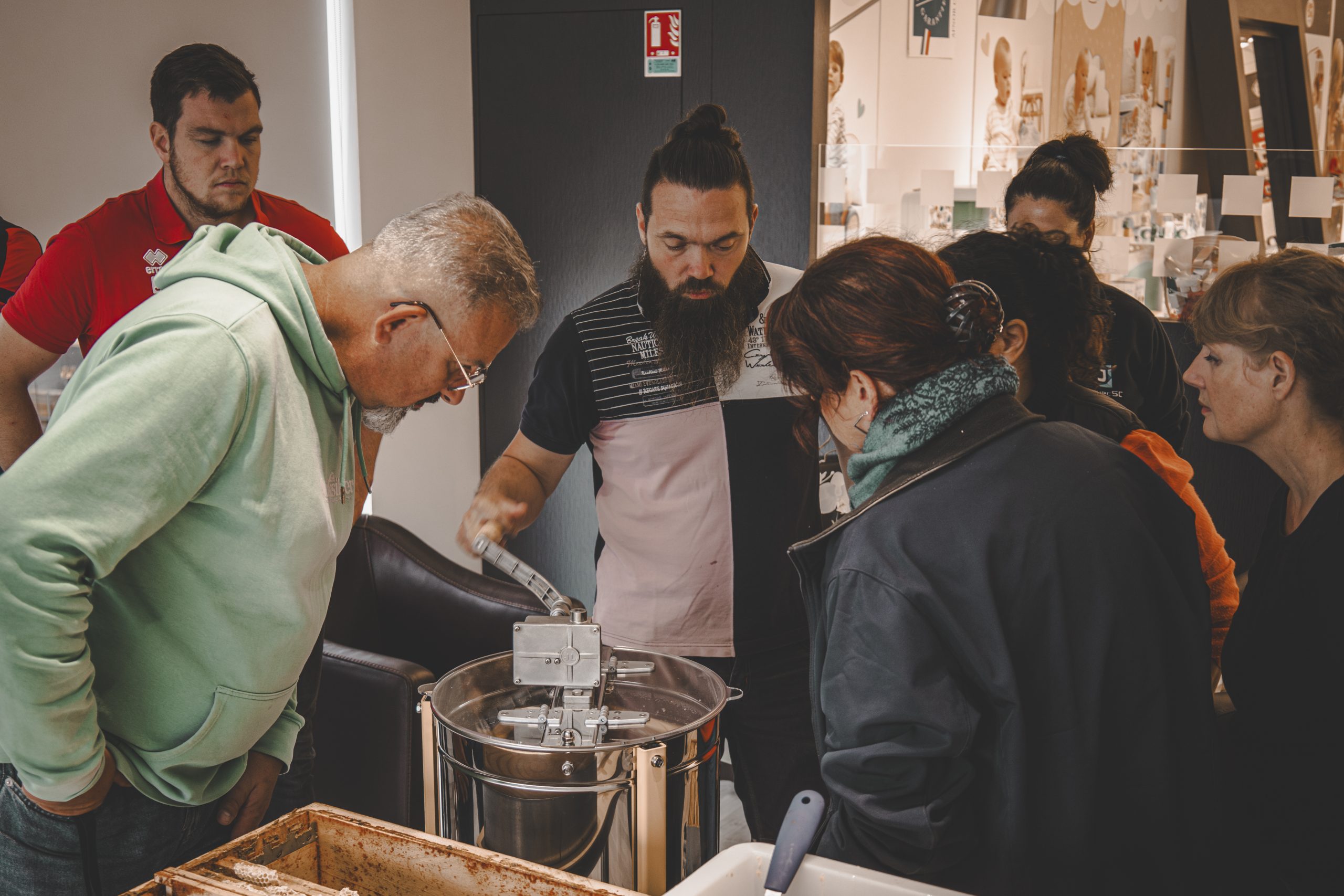 Puis, direction l’entrepruse Ecoiffier, où Maxime Salles et Wandrille Picault ont rejoint les collaborateurs pour une récolte issue des ruches installées sur leur site.