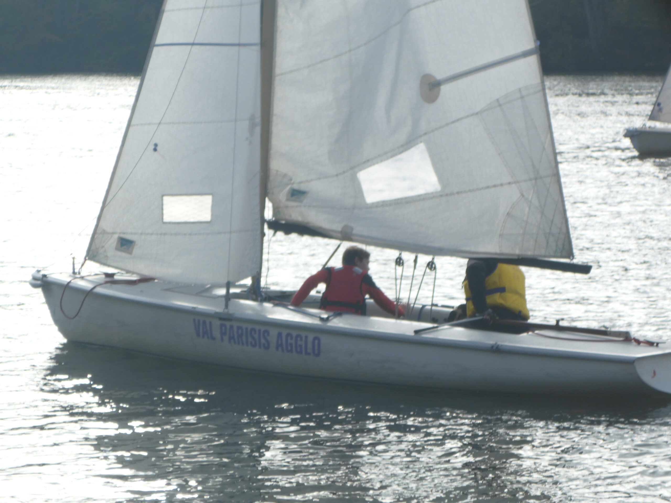 il était talonné par le meilleur F15 de Montesson . Jean Loup et Philippe sur le Paul Fischesser s’étaient hissés en milieu de flotte avec Martin sur son Open 500, Georges et Jean Luc auraient du effectuer le contrôle technique recommandé un peu plus haut avec une grand voile qui aurait mérité un peu plus de hauteur, ils suivaient scrupuleusement Jean François qui revendiquait crânement une bonne vitesse avec sa grand voile sans lattes. Pour leur première régate en équipage entièrement féminine , Fabienne et Camille bouclaient avec une constante bonne humeur le parcours en dernière position. La bataille chez les F15 tournait plutôt à l’avantage des équipages de Montesson malgré les efforts de Claude et Nathalie dans un vent du sud trop régulier pour favoriser les locaux.