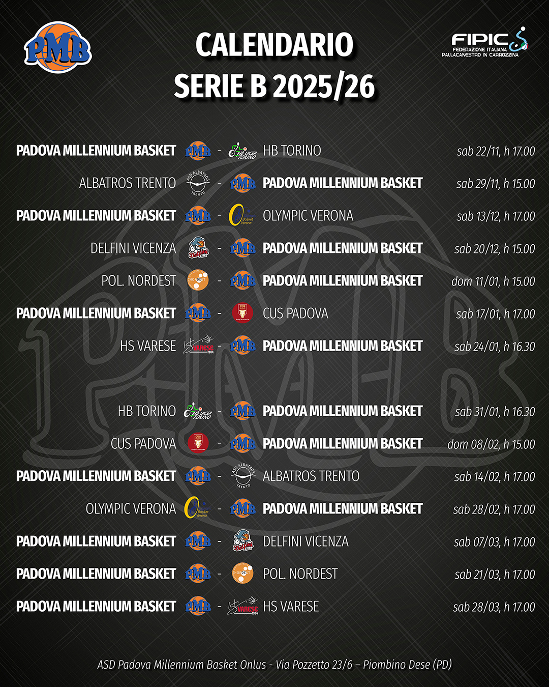 Infine, un’altra notizia importante e di prestigio. L’ufficialità è arrivata proprio pochi giorni fa: dopo la felice esperienza della scorsa primavera, anche nel 2026 il Padova Millennium Basket avrà l’onore di organizzare e ospitare un girone di Eurocup 2. Il 13 e 14 marzo il grande basket in carrozzina internazionale tornerà dunque a Piombino Dese, per una due giorni di grande spettacolo.