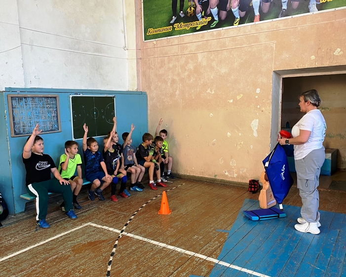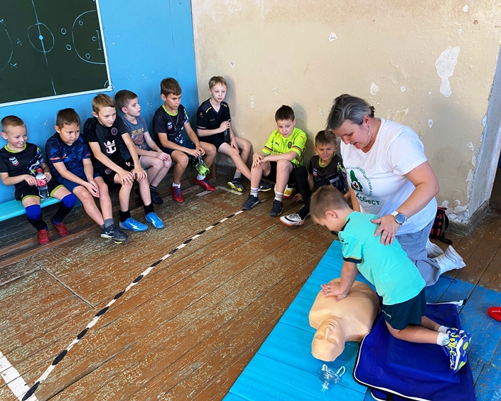 Преподаватель медицинского колледжа Наталья Махт поделилась с ребятами из футбольной секции знаниями и навыками оказания первой помощи.