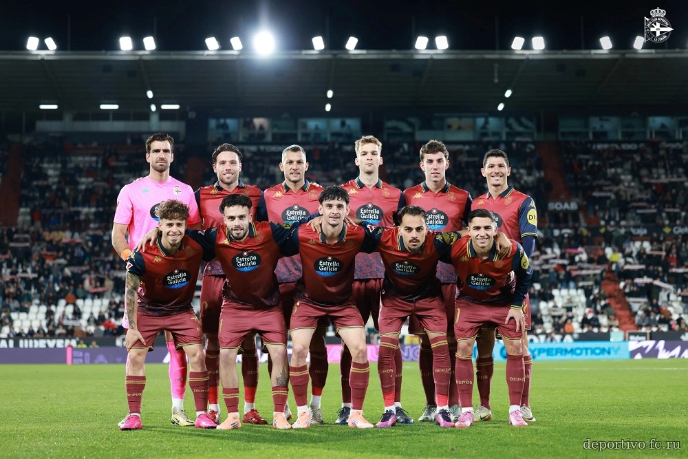 Депортиво: Germán, Loureiro, Arnau, Dani Barcia, Quagliata, Jose Ángel (Gragera, min. 82), Patiño (Villares, min. 66), Mario Soriano (Rubén, min. 90), Mella, Yeremay (Cristian Herrera, min. 90), Stoichkov (Eddahchouri, min. 82)